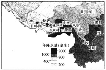 1、单选题 读藏东南地区年降水量分布图,回答1~2题。
