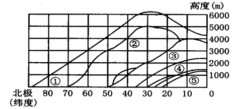 5、综合题 读“北半球自然带的纬度地带性和垂直地带性示意图”,回答下列问题。(10分,每空1分)