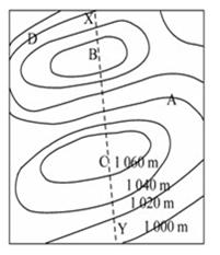 【小题1】沿左图中XY方向所作的900hpa等压面剖面图,与右图中四幅等压面剖面图最接近的是( )