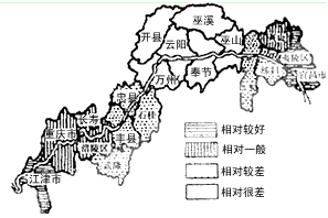 1、综合题 读“三峡库区环境状况类型示意图”及资料,回答下列问题。