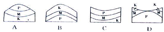 小题1:本题考查地质构造的判读和等值线图的判读。图中地层P到K由老到新,判断为背斜。根据图中等高线的分布,往高处凸,所以为谷地,为背斜谷。所以本题选择D选项。