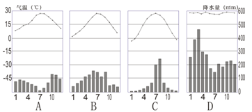 小题1:下列气温曲线与降水柱状图中,能反映上海市气候类型的是