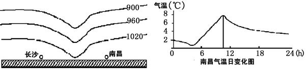 图a?图b1.受图a天气系统影响,与南昌相比,长沙的天气特征2.图a是图b所示日期南昌的气温日变化图,据此推测南昌该日最可能出现3.若该天气系统西移,受其影响长沙的风向变化是