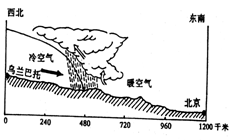 1、单选题 当图中的天气系统到达北京时,北京的天气会