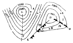 2、单选题 下面的气流状况示意图中,表示北半球气旋的图是: ( )