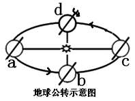 小题2:图中a应为6月22日,b应为9月23日,c应为12月22日,d应为3月21日。神舟十号发射时是6月11日,地球应位于公转轨道的d-a之间,故选D。