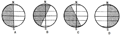 小题3:下列太阳光照侧视图(阴影部分表示夜半球)中,能正确表示地球运行到a位置时昼夜状况的是