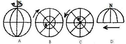 1、单选题 下列表示地球自转方向的图示,正确的是