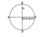 3、单选题 下图是以南充市某地E(31°N , 106.5°E )为中心的地球俯视半球图,N点为北极点,弧 AEC 将图示区域分为相等的两版。读图回答下列各题。