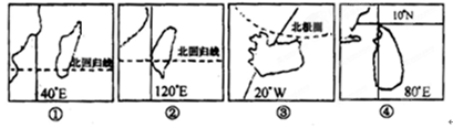 2、单选题 下图表示回归线沿线的海陆分布。读图回答