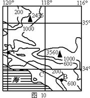 4、综合题 (6分)下图为“世界某地区等高线分布示意图”,读图回答下列问题。