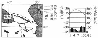 2、单选题 2014年冬奥会计划于当年的2月7日至23日在俄罗斯南部城市索契举行。图为索契区域示意图和气候资料图,完成下列各题。
