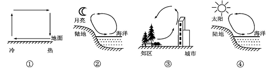 【小题1】若图示为热力环流,则近地面a、b的气压(P)和气温(T)数值大小比较,正确的是