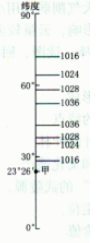5、单选题 下图为某月90°E附近海平面气压示意图(单位:hPa)。读图,回答问题。1.据气压值推断,该月最有可能是