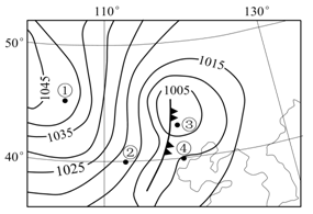 5、单选题 图为某日08时海平面气压分布图(单位:百帕),读图回答小题。