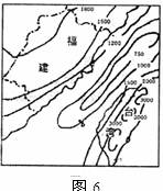 (图5)及国部分区域年等降水量分布图(图6),回答8-11题