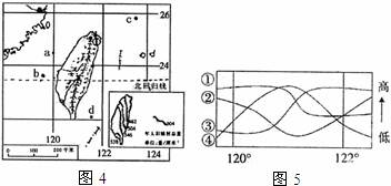 小题1:钓鱼岛位于图4中a、b、c、d的何处