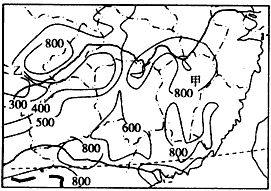 1、乙地多年平均地面蒸发量线密集的主要原因是