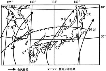 2、单选题 读某地一月等温线和台风移动流路径图,回答下列问题。