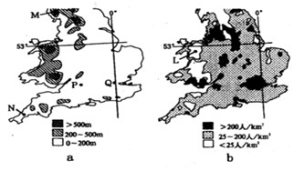 4、单选题 下图示意某国部分地区的地形(a)和人口密度(b)。读下图,完成下列问题。