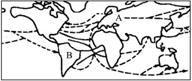 1、单选题 读“世界人口迁移示意图”,完成(1)—(3)题。
