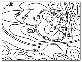 2、单选题 读“某地等高线地形图(单位:米)”,完成1—3题。