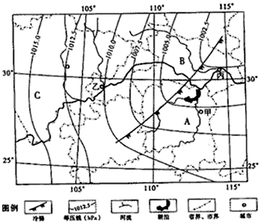 (1)判断此时图中甲城市的风向,并指出锋面系统过境后该地的天气状况。