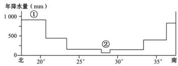 4、单选题 下面为某大陆沿140°经线年降水量分布图,读图回答下面2题。