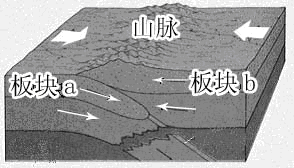 (2)图中的山脉是 ,属于地质构造中的 ,板块a为 板块,板块b为 板块。