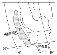 (5)据材料三, 开普敦所处的自然带为?。(2分)南非不仅有“黄金宝石之国”的美誉,而且其渔业资源也比较丰富。试分析图中M附近渔业资源丰富的原因,以及M海域可能出现的环境问题。(6分)