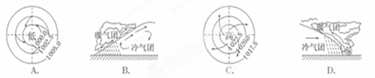 小题1:读材料,其时仲冬天气,说明是冬季,降下一天大雪,约已没过马膝,说明雪大,是暴雪。冬季的暴雪天气是冷锋活动影响,D对。图A是低压中心,气话活动,冬季我国季风气候区基本没有气旋活动,A错。冬季我国主要是冷锋活动,暖锋活动不会是暴雪天气,B错。图C是高压中心,不会有降雪天气,C错。