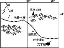 材料二 新疆达坂城远离海洋,但风能资源却比较丰富。下图为新疆达坂城及其附近地区简图。