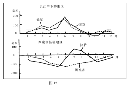 1.长江中下游地区明显缺水的月份是2.关于西藏和新疆地区水分盈亏的叙述,正确的是