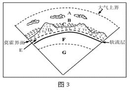 本题解析:试题分析:由图中可判断,A为大气圈,B为生物圈,C为水圈。D为地壳,E为上地幔,F为地幔,G为地核。