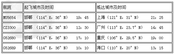 3、单选题 表1是邯郸机场某几日航班班次表,读表回答1-2题: