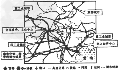 (2)据图中信息说明,该区域城镇体系构成的主要条件是 ____________,______________等;京、津两城市都建有中心商务区(CBD)的共同条件是____________。
