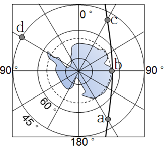 1、单选题 读“某日晨线图”,a、c为晨线的顶点,b点为晨线的中点,晨线在地球上为西北—东南走向,b点的经度为120°E。据此回答问题。