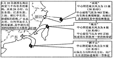 C.向浙江北部靠近的过程中,杭州的风力加强,风向由偏北转为偏南