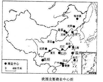 1、单选题 图是我国主要商业中心分布图,影响我国商业中心城市分布的最主要区位条件是(?)