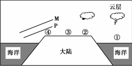 小题1:如果图中M、P表示近地面的等压面,此时④地吹(仅考虑海陆因素)