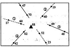 4、单选题  如图中各点的数值为海拔高度(单位是米),读图.完成下列问题。