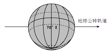 3、综合题 图是地球公转在二分二至四个节气中的某一个节气,阴影部分为夜半球,虚线是回归线或极圈.读图回答问题。(10分)图中经度不清