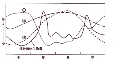2、单选题 ?图中4条曲线分别示意北半球中纬度某湖泊的浮游植物生物量与光照、营养物质含量、气温的年变化。据此完成小题。