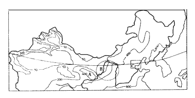 (1)材料一所示区域年降水量地区分布特点是? ;A地年降水量范围在?之间。