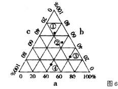 1、单选题 11.若a、b、c分别表示农业生产投入要素中的劳动力投入、生产资料投入、科技投入(不考虑其它因素),则图6中四点最能体现水稻种植业的特点的是