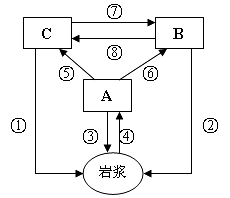 (2)图中各数字代表的地质作用,属于外力作用的是 (1分),属于高温融化作用的是 (1分)。