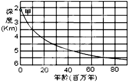 1、单选题 读海底深度与其岩石年龄关系图,回答下列小题。