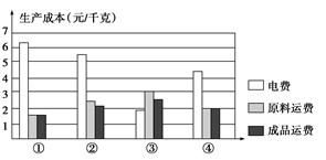 1.读图可知,生产成本=电费+原材料运费+成品运费。计算比较可知③地成本最低,因此应布局在③地。