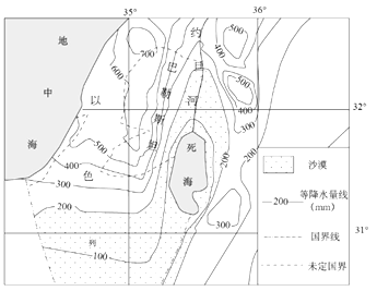 材料一: 以色列是一个缺水的国家,沙漠面积占国土面积的67%,冬季温和、夏季炎热,年蒸发量达2500毫米。然而先进的节水技术,使这个“不毛之地”变成了“花果之乡”,每年都有大量蔬菜、花卉出口到欧洲。死海是该地区最大的湖泊,生活在死海岸边的人们发现这里的沙漠常弥漫着大雾。