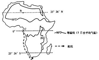 (1)沿图中航线航行.大陆沿岸的气候类型依次为热带雨林气候、 气候 、